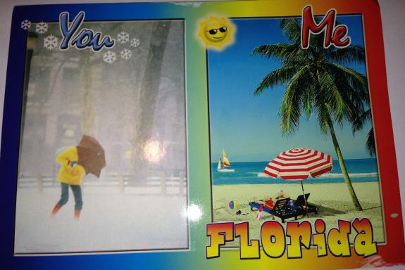 Our good friend and fellow Geezer, Fergie, who happens to be one of the Snowbirds that we talk about, is still in Florida with his wife, Brenda. To show that he was thinking about us here in Akron, he sent us a postcard.