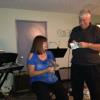 Above, "Big Daddy" Dan Minier is grilling Sherry with some multiple choice questions FROM the year she was born. She was awarded two instant lottery tickets for every right answer, but only one ticket for a correct answer with help from the audience. This went on after every break by the band and at the end of the evening.